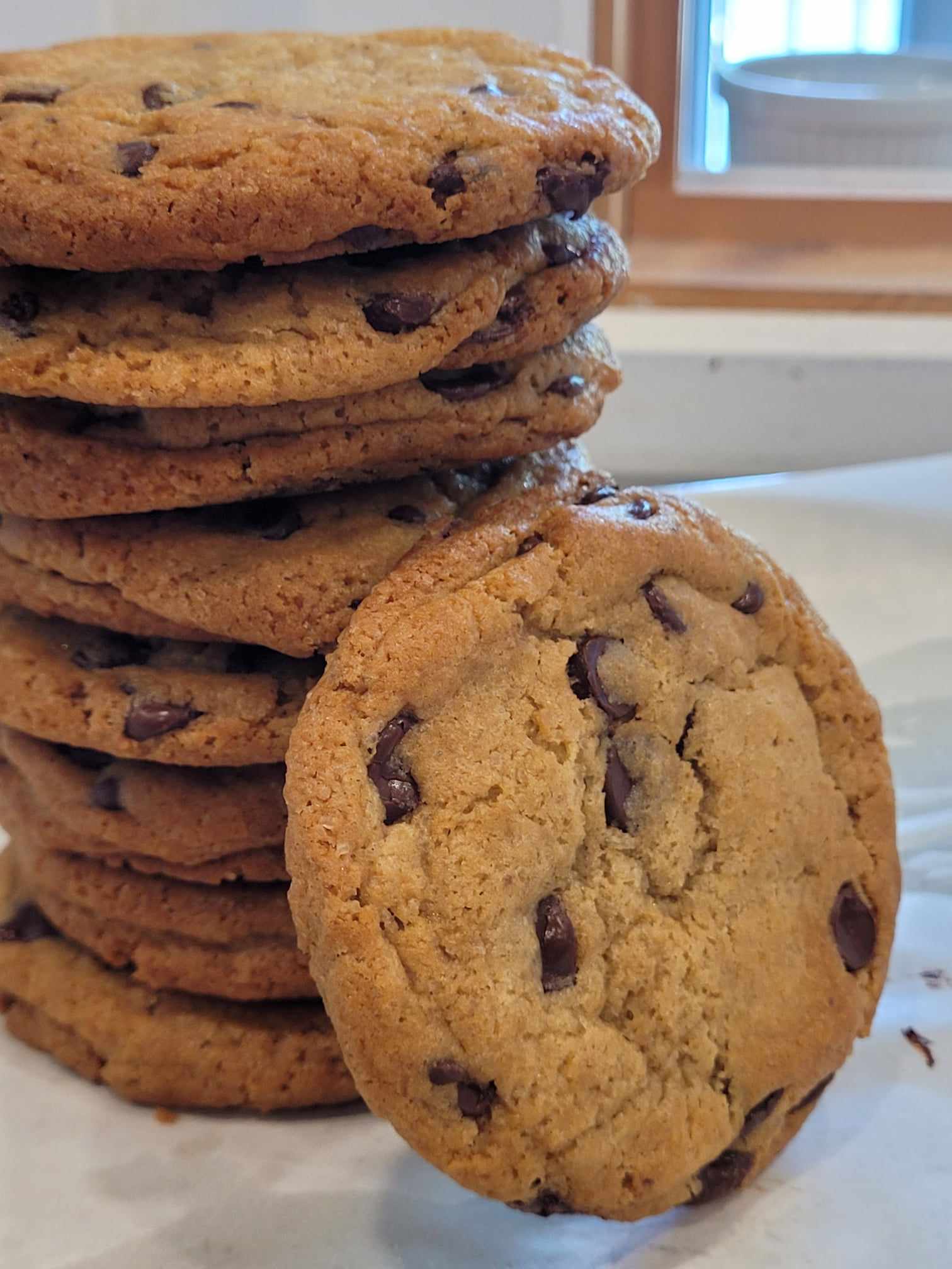 Farine de blé, pépites de chocolat mi-sucré, levain (farine de blé, eau), beurre, cassonade, sucre de canne, œufs, extrait de vanille pure, sel de mer, bicarbonate de soude, poudre levante